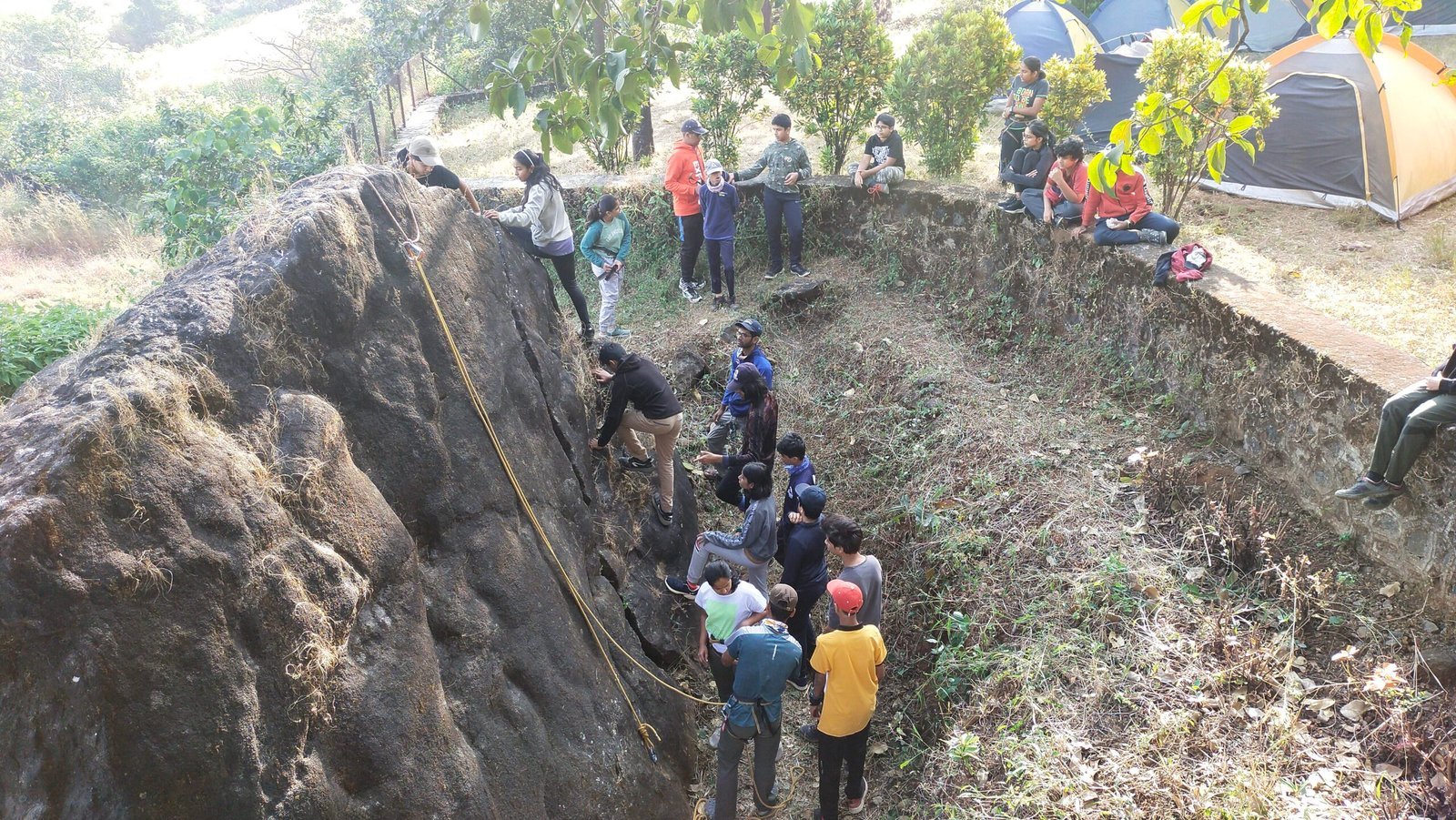 - Adventure activities including rappelling, bouldering, trekking, and tent pitching,